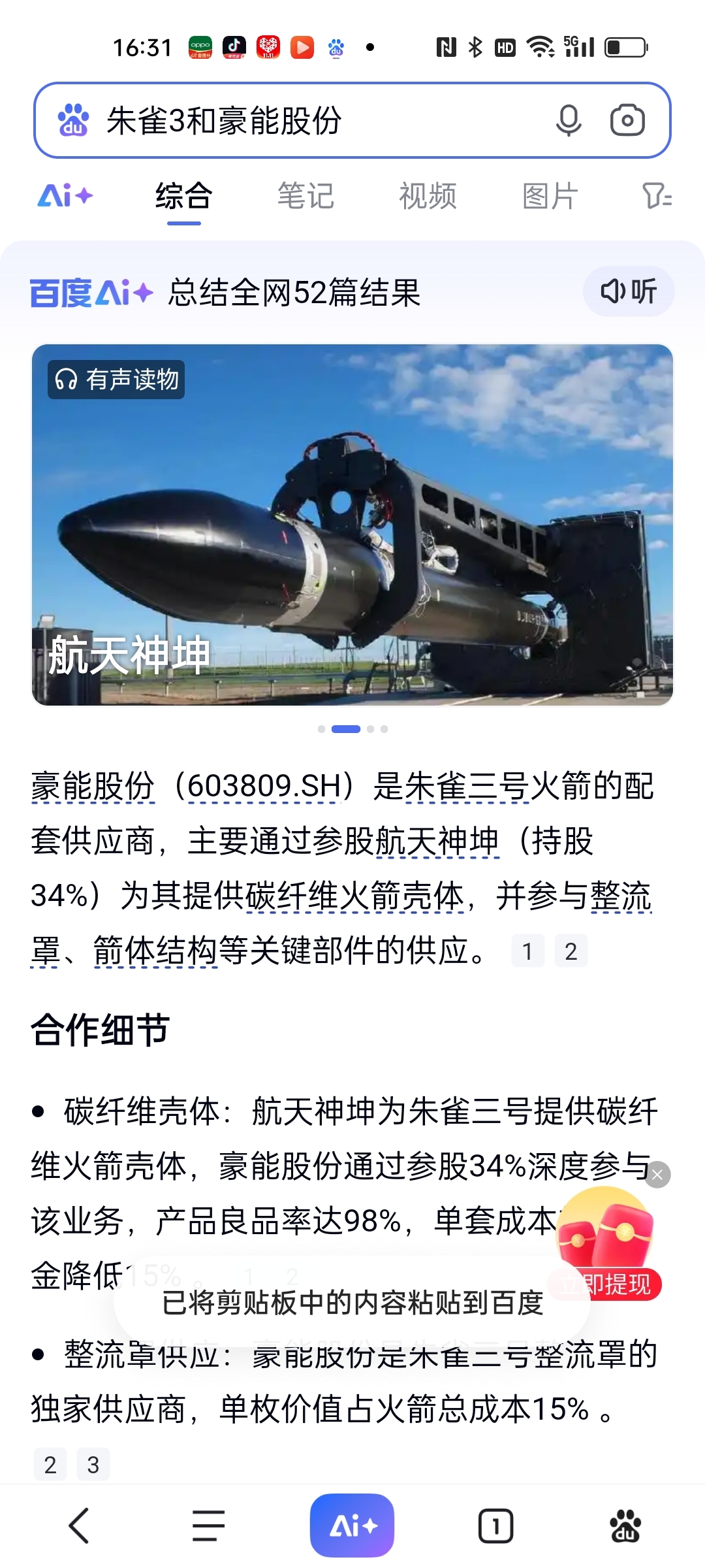 $豪能股份(SH603809)$ 百度出来的,是明天发射吗