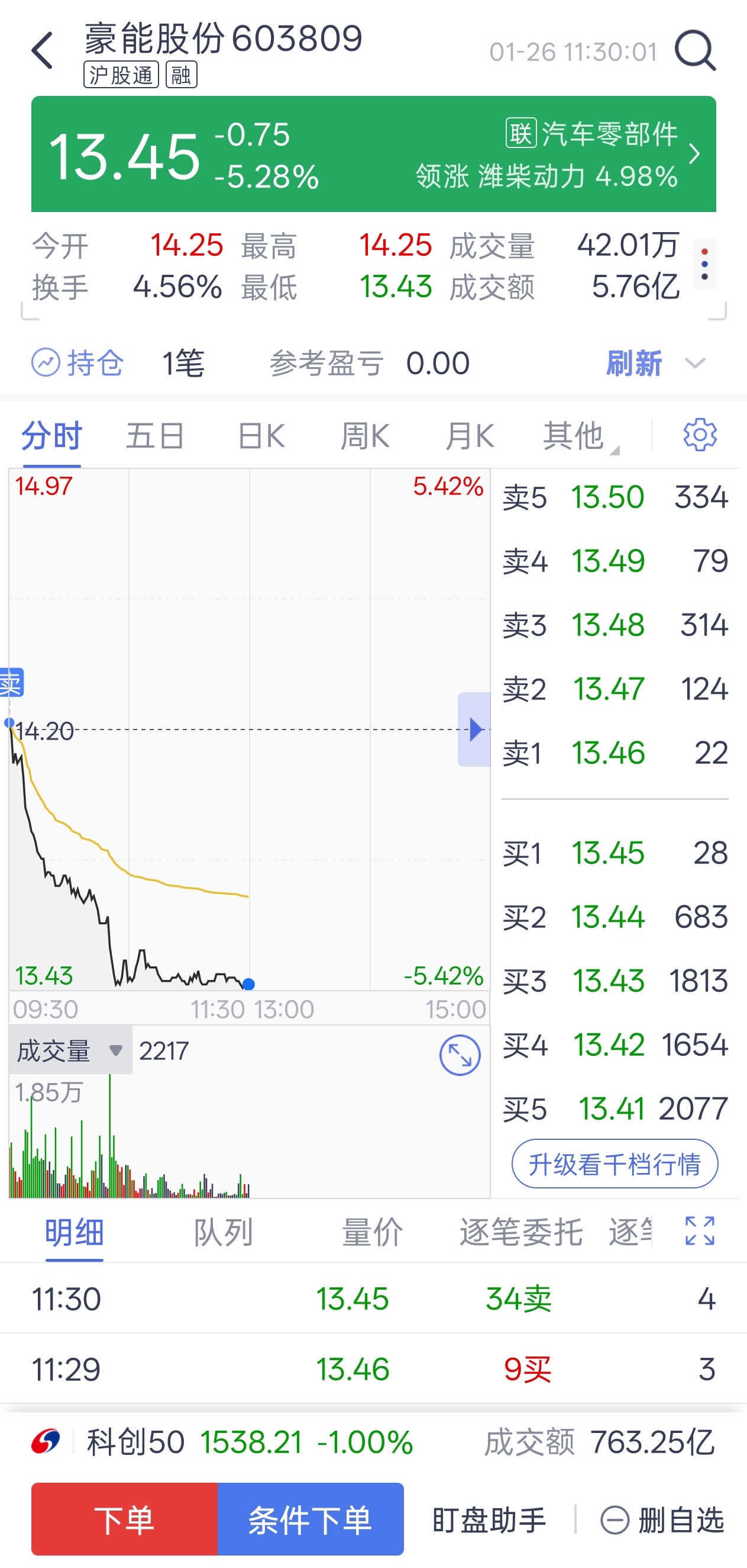 $豪能股份(SH603809)$回头一看躲过8%的下跌,真的是好坑