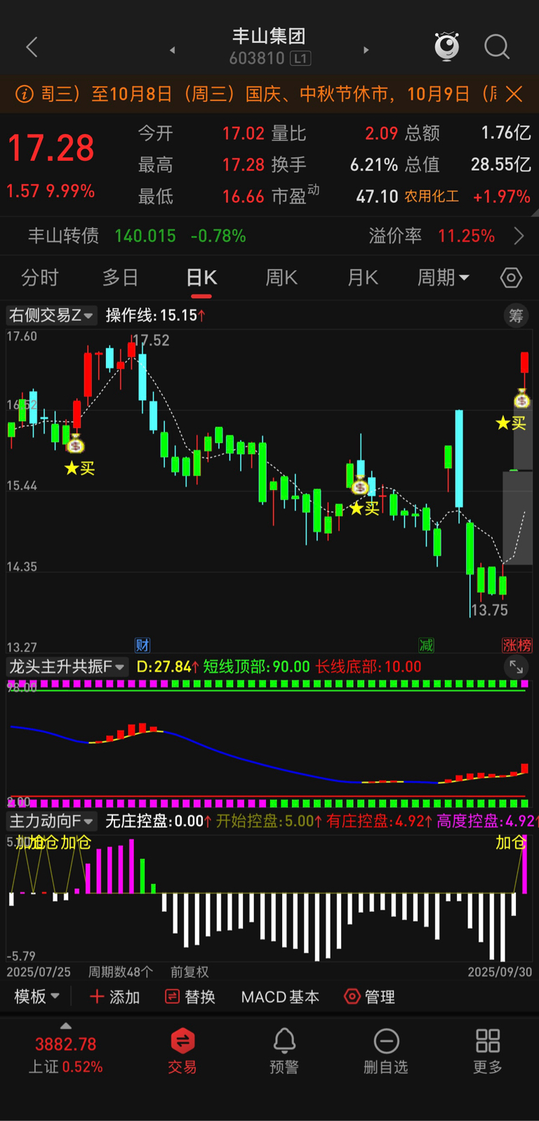 $丰山集团(SH603810)$ 明日直接干它,跟上节奏
