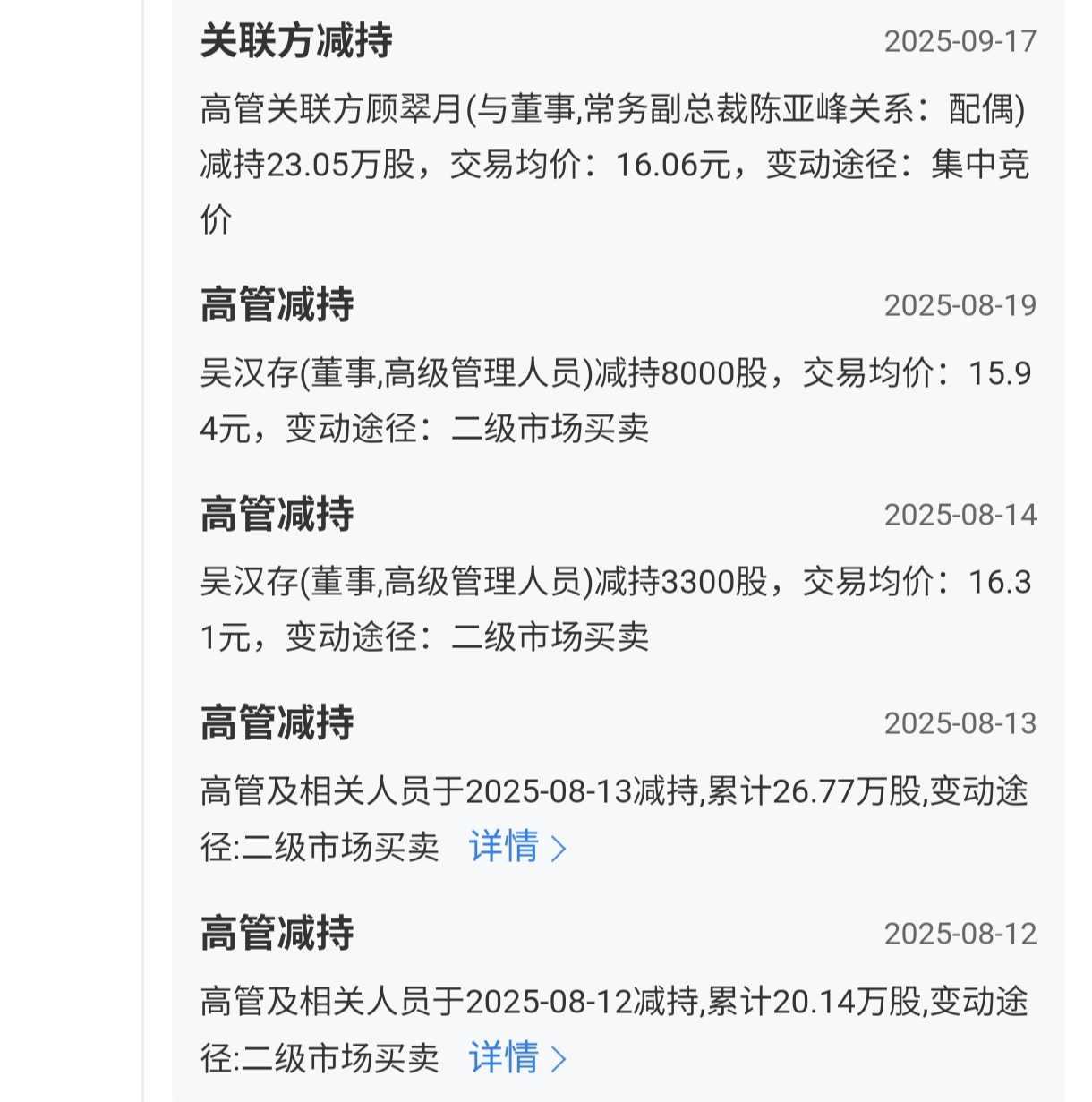 $丰山集团(SH603810)$ 公司里的人都不看好自己公司天天减持套现,要跑路了,有图为证,难怪跌跌不休。