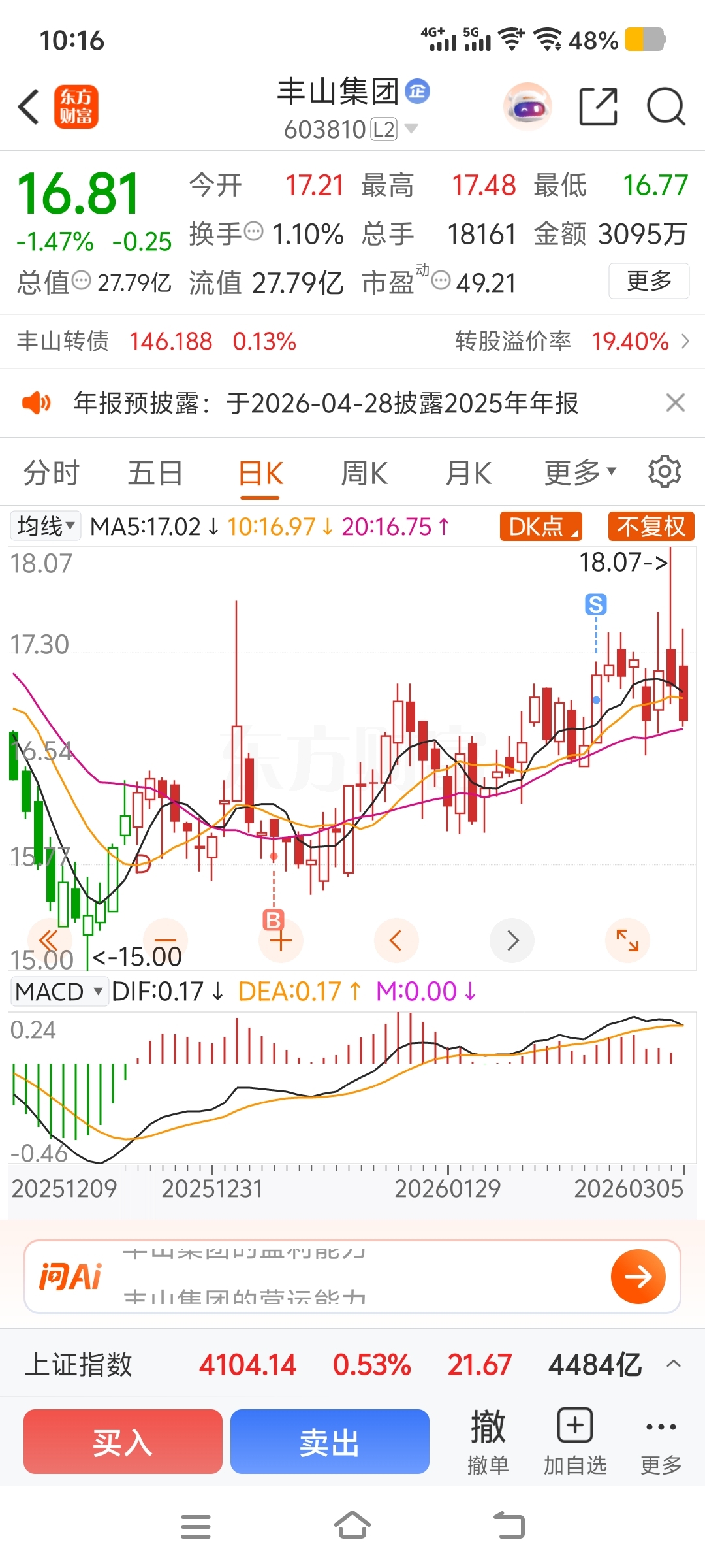 $丰山集团(SH603810)$ 虽然没卖到高点,等15附近再进入。