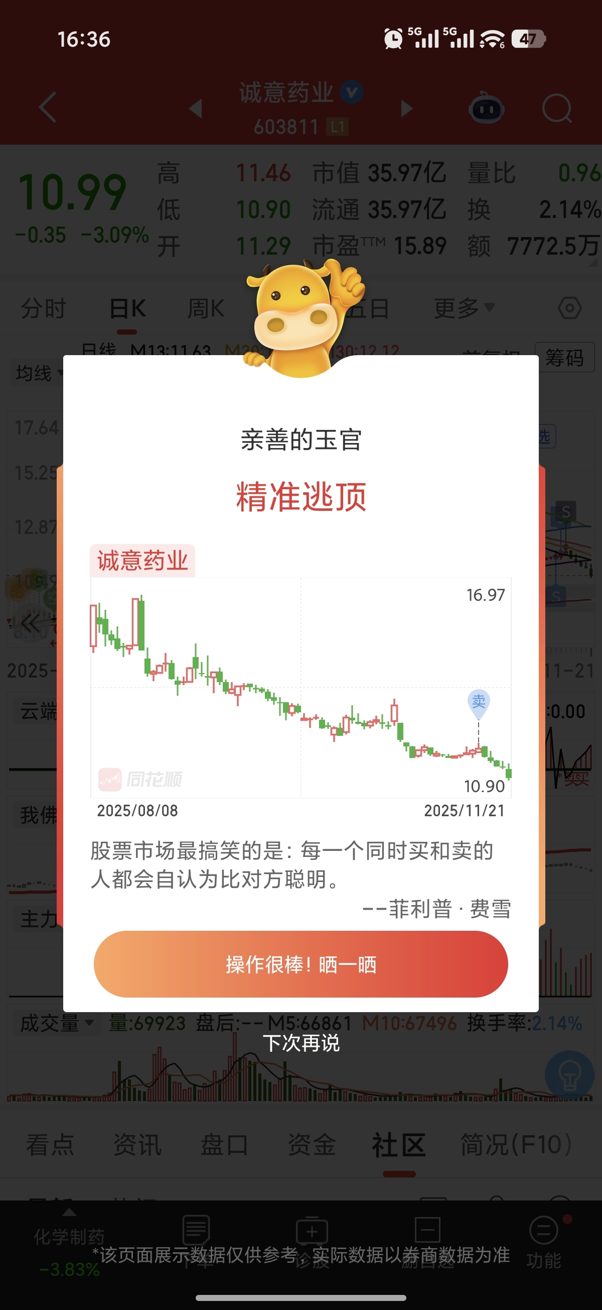 $诚意药业(SH603811)$