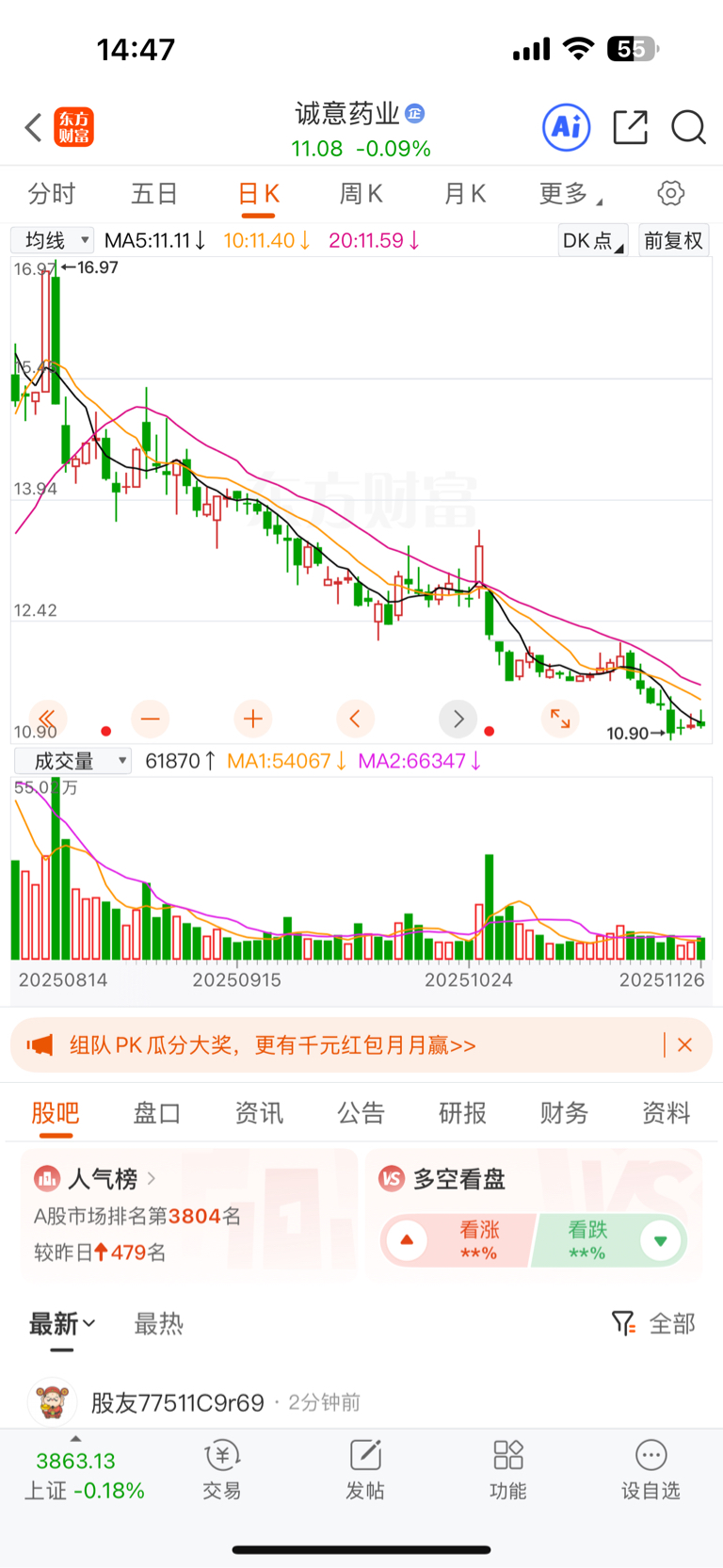 $诚意药业(SH603811)$ 听劝,细看它的日线后再谨慎考虑买不买进