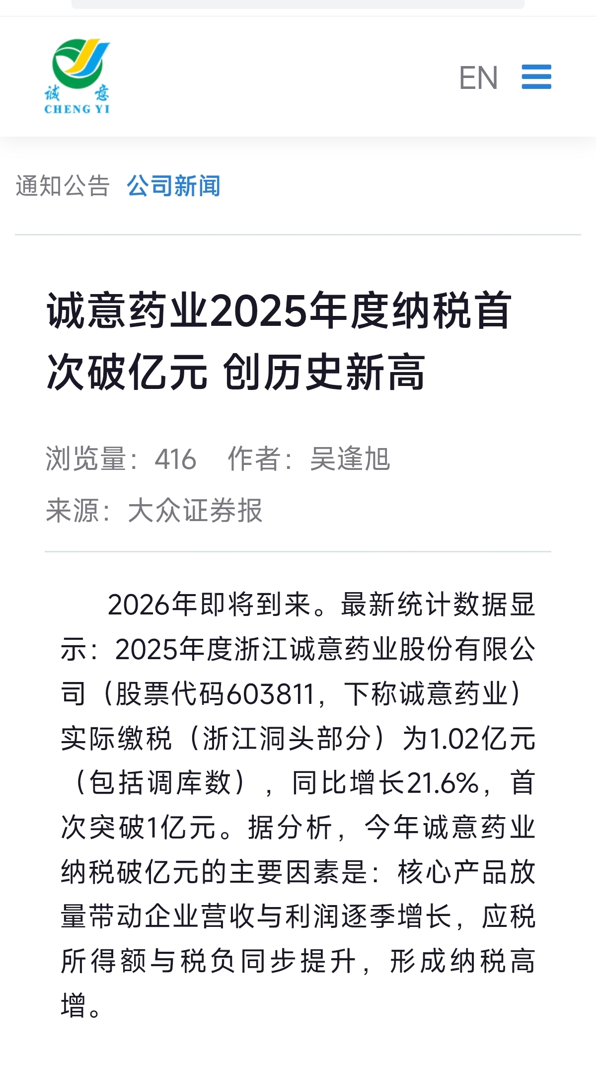 $诚意药业(SH603811)$