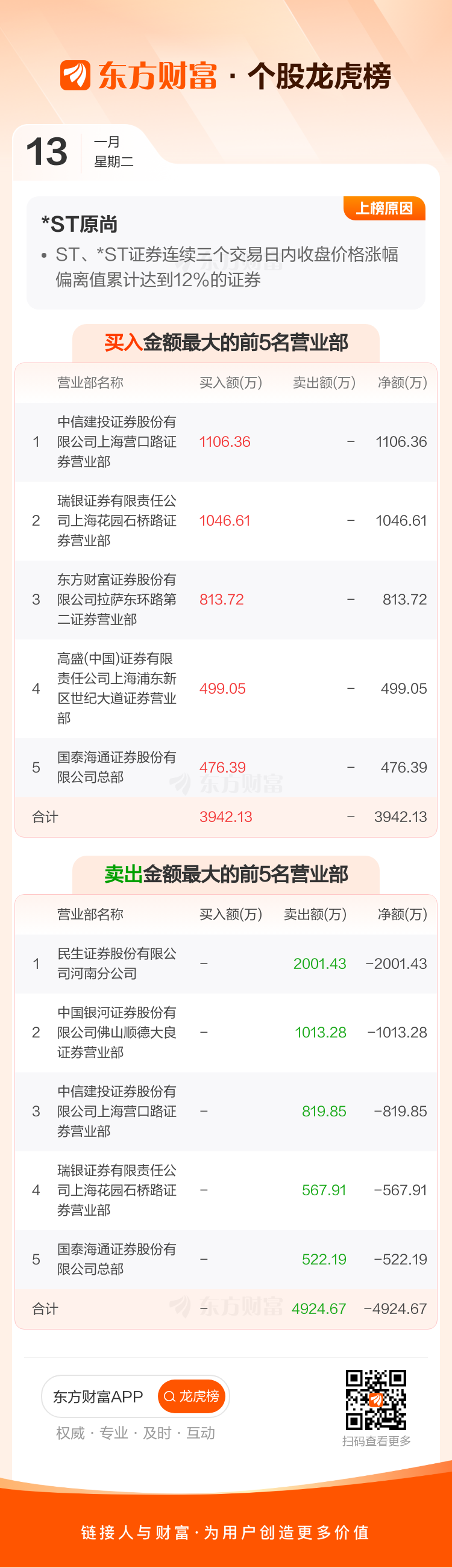 *ST原尚(603813)龙虎榜数据(01-13)
