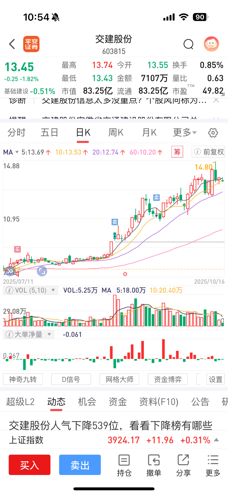 $交建股份(SH603815)$ 主力没钱拉升了,没人接力,能量枯竭。马上连续跌停