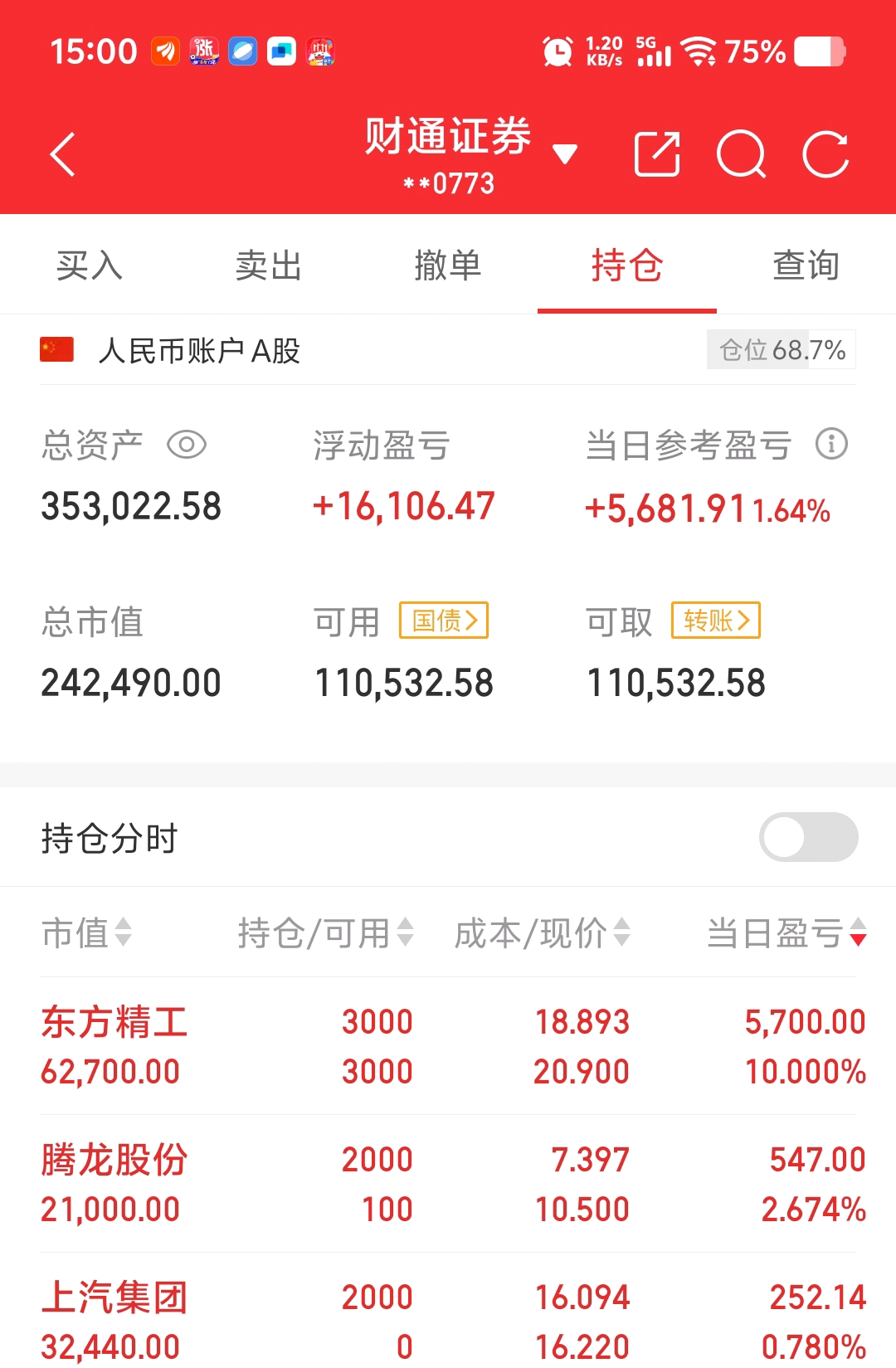 $交建股份(SH603815)$ $继峰股份(SH603997)$ @赚点买水果的钱 涨停收盘了吗?只可惜在意账号今天不到五个点不够6字头资金那明天就入金一点吧
