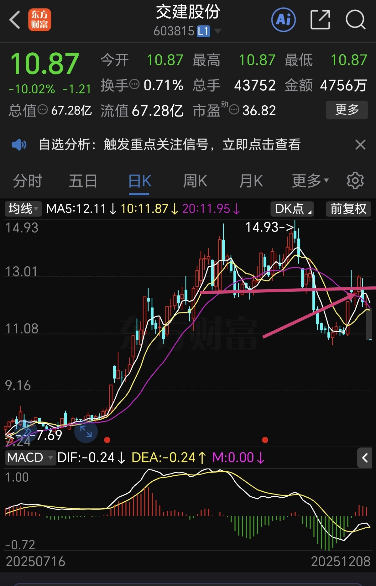 $交建股份(SH603815)$ 哭也没有用,很明显的颈线没有站稳!也就是之前的止损线红线!只有站稳颈线富贵才会考虑回来