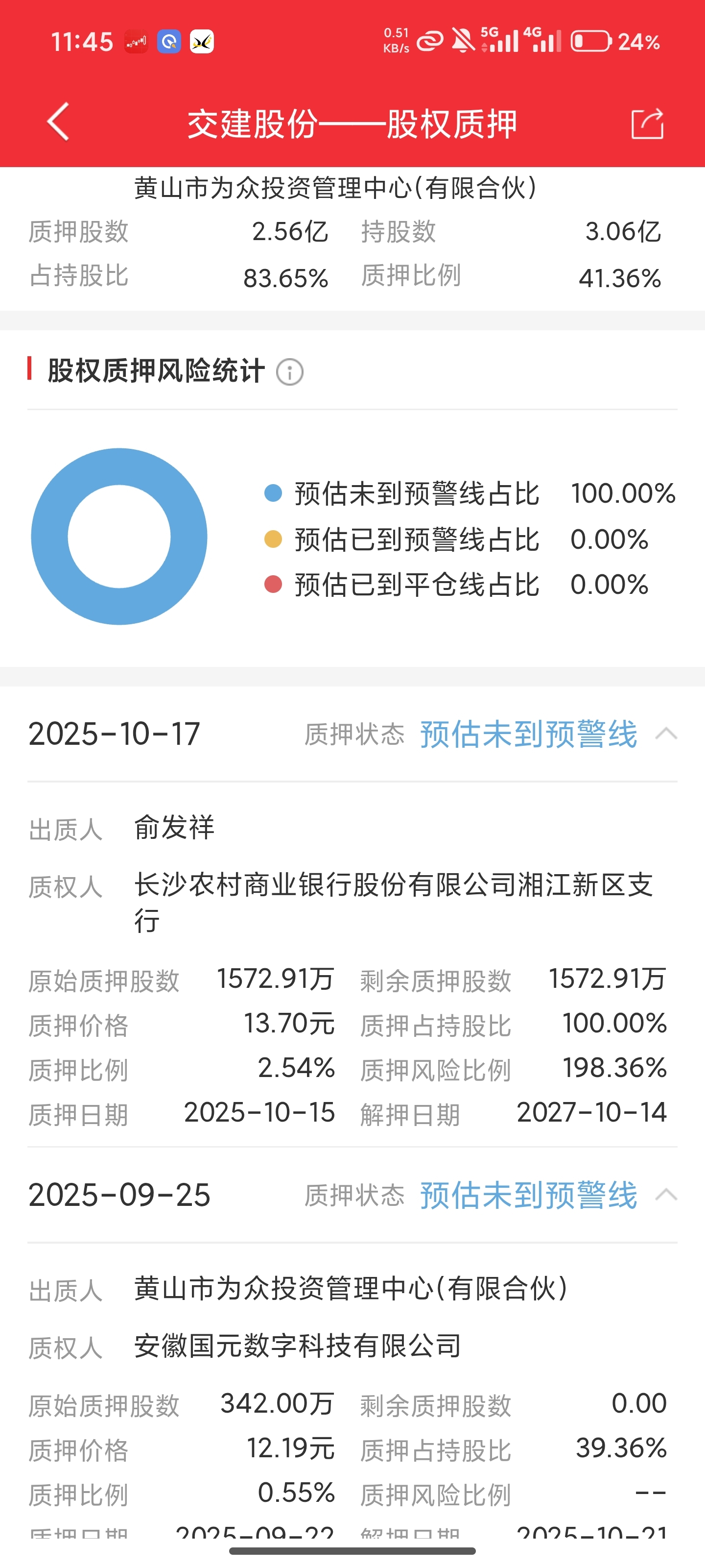 $交建股份(SH603815)$ 质押100%,这要是被平仓还了得