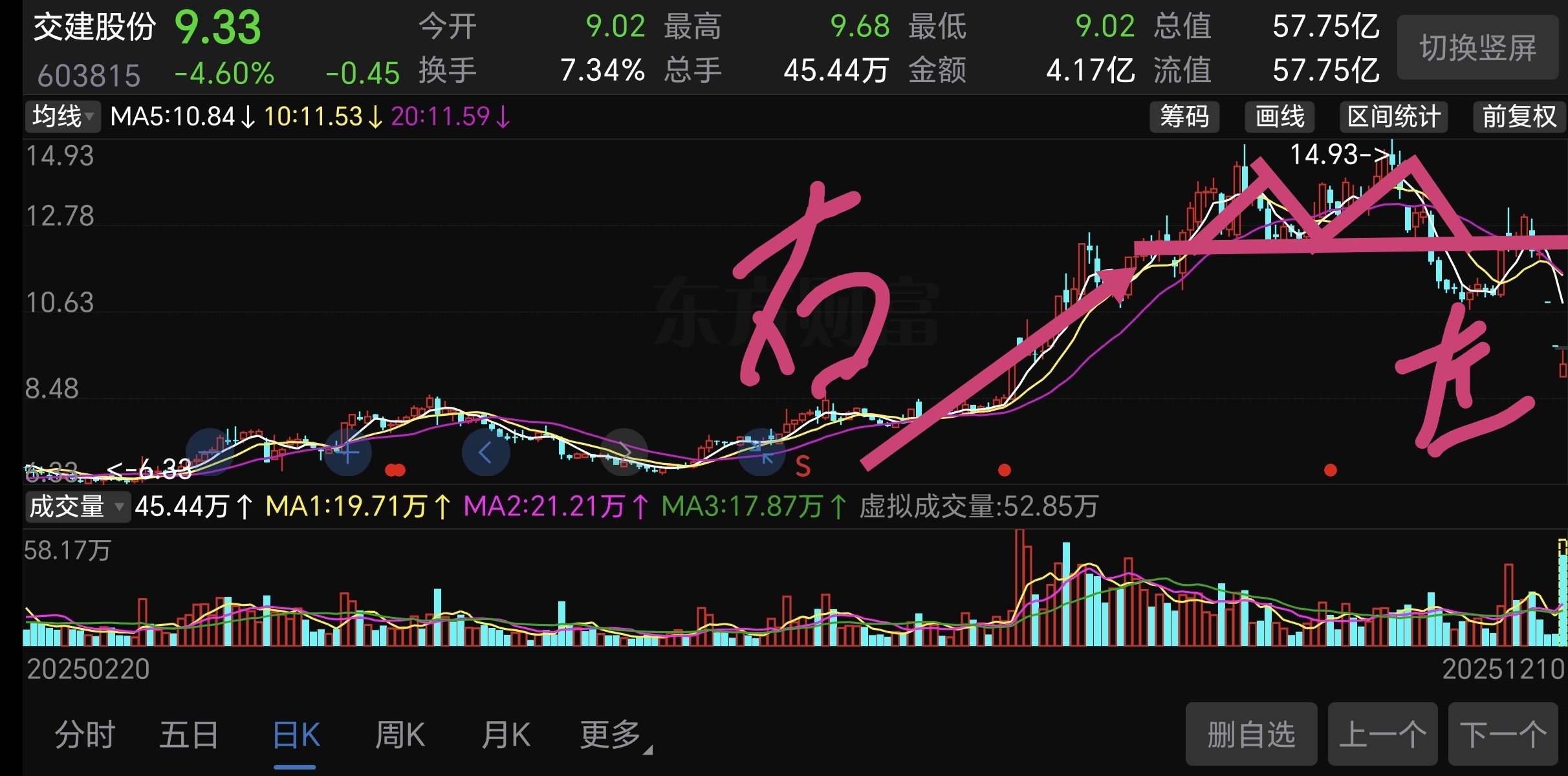 $交建股份(SH603815)$ 所以说,玩股票还是应该老老实实玩右侧交易,左侧再好我们都不玩,设定止损位。说实话左侧交易不是谁都能玩的,胆子大的可以玩!右侧非常稳:如图