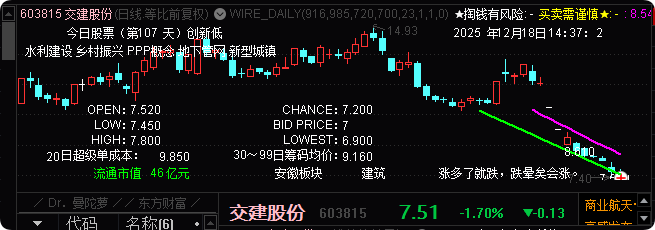 7.20 交建股份, 2025/12/18 Close 7.52。