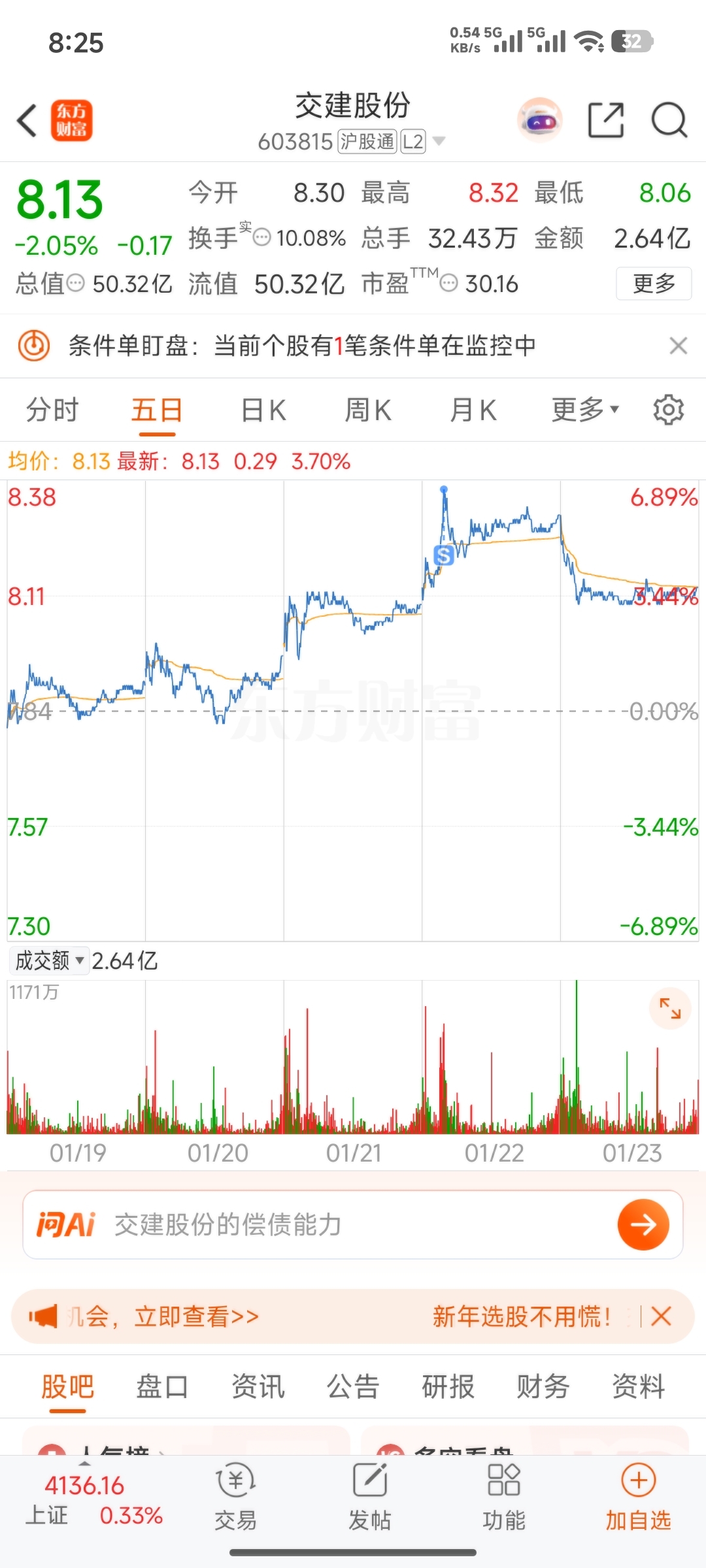 $交建股份(SH603815)$ 辛好吃得快