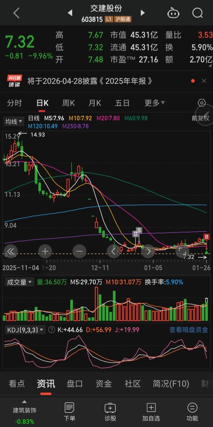 $交建股份(SH603815)$ 刚刚亏损20亿的建设机械拉了一波,所以刚刚买了,明天看能不能打到我的止损线,打到的话先止损再继续抄底