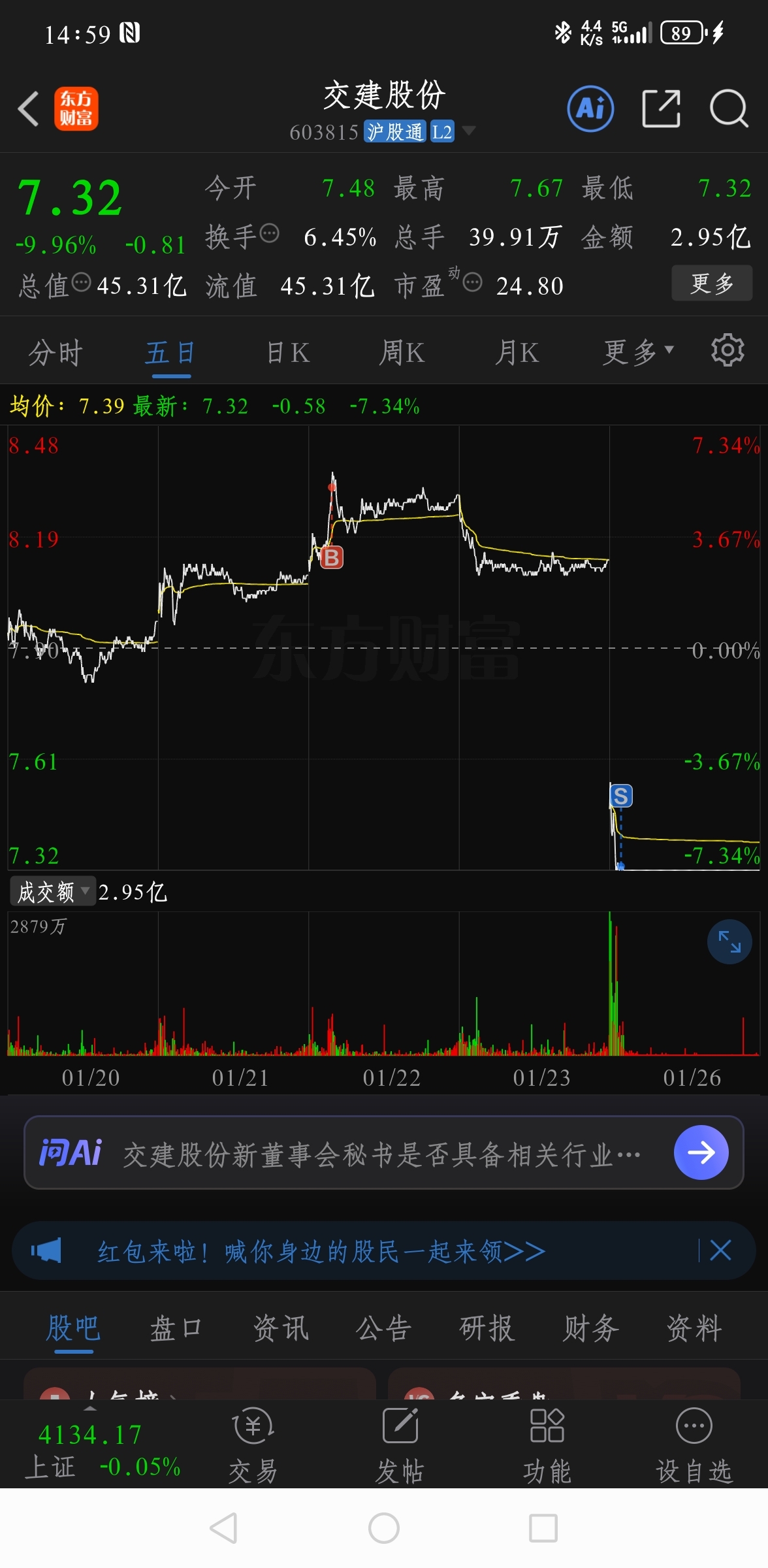 温馨提示: 1.根据《证券法》规定,禁止编造、传播虚假信息或者误导性信息,扰乱证券市场;2.用户在本社区发表的所有资料、言论等仅代表个人观点,与本网站立场无关,不对您构成任何投资建议。用户应基于自己的独立判断,自行决定证券投资并承担相应风险。《东方财富社区管理规定》