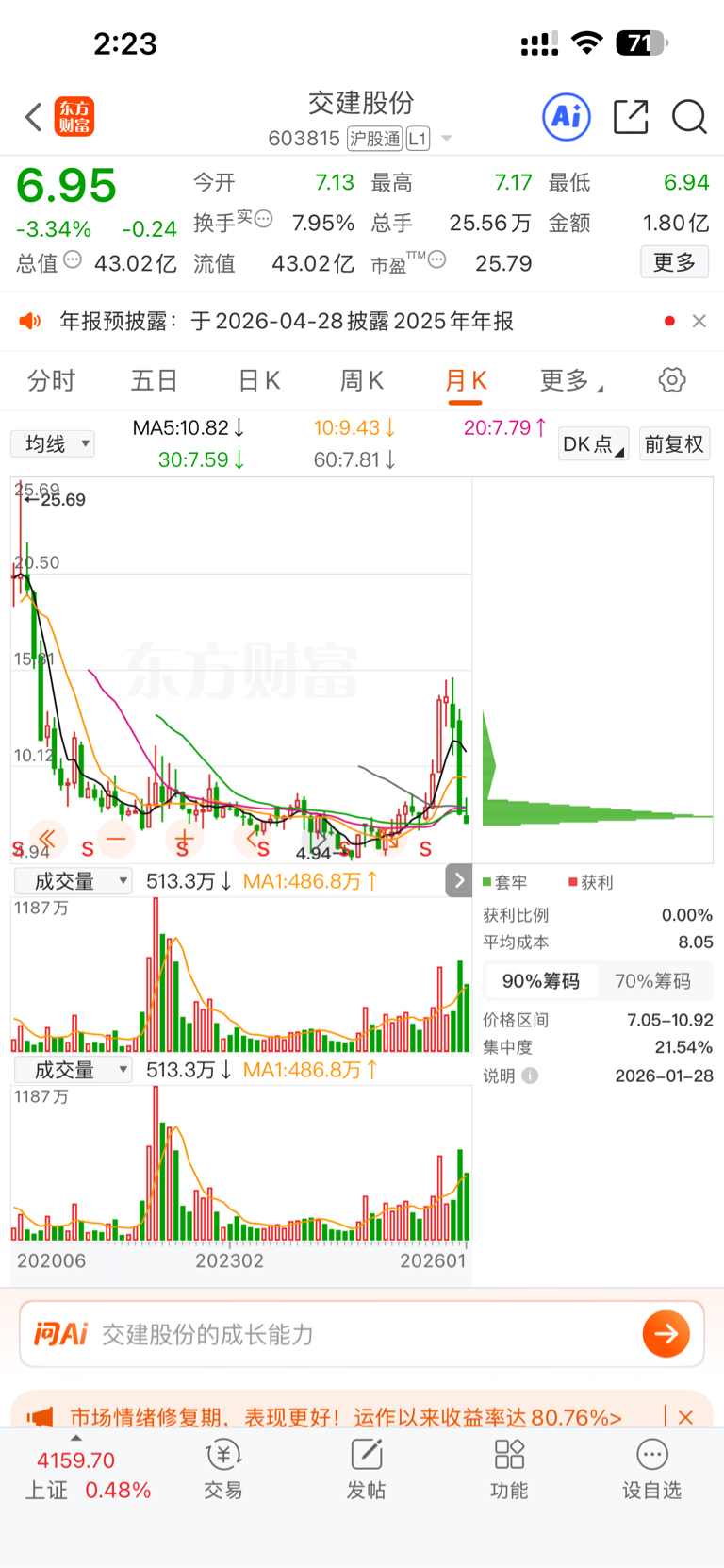 $交建股份(SH603815)$ 大家去看看获利筹码吧,赔钱卖?