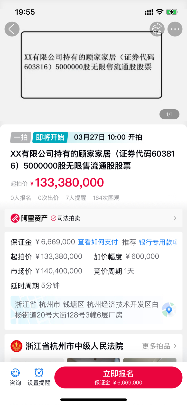 $顾家家居(SH603816)$ 3月27日,狗家1470万股,将被以26.68元每股起拍,为了把起拍价打压下去,一个月内狗家必然会被砸到22元以下