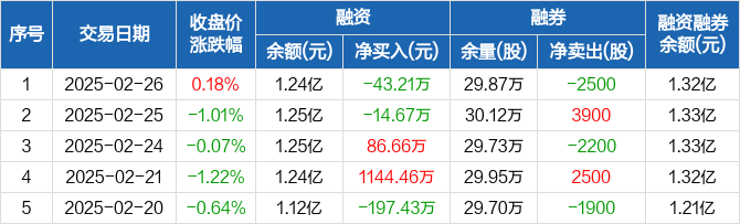 顾家家居:融资净偿还43.21万元,融资余额1.24亿元(02-26)