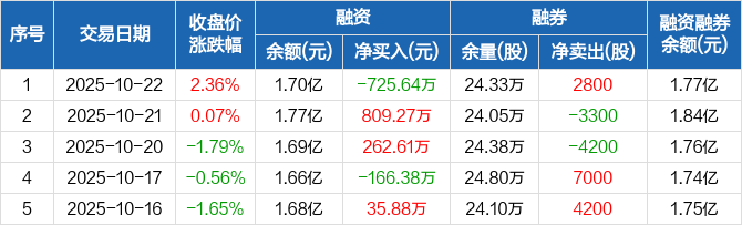 顾家家居:融资净偿还725.64万元,融资余额1.7亿元(10-22)