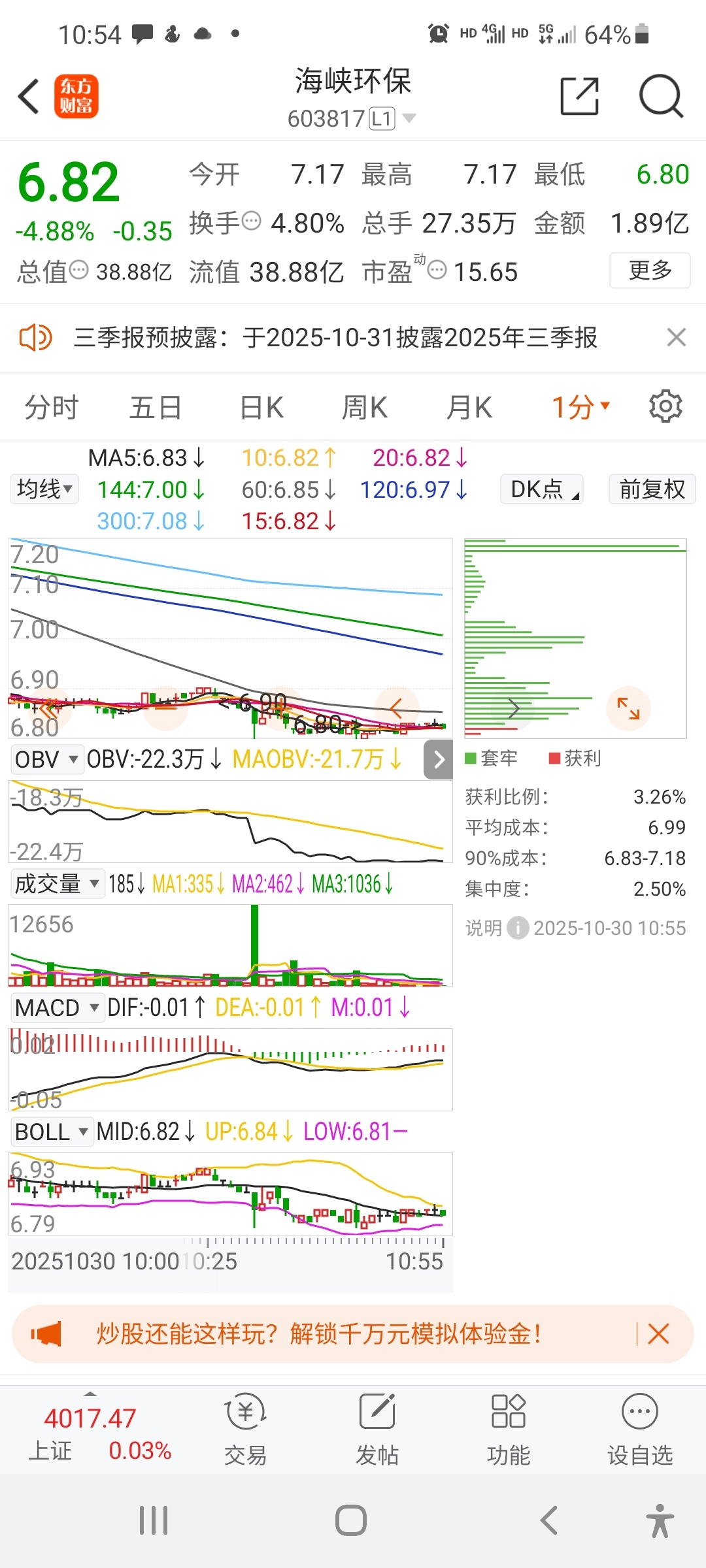 $海峡环保(SH603817)$ 6.83是谁在做啥