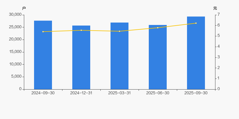 2024年9月30日至今,公司股东户数有所增长,区间涨幅为6.01%。2024年9月30日至2025年9月30日区间股价上涨14.73%。