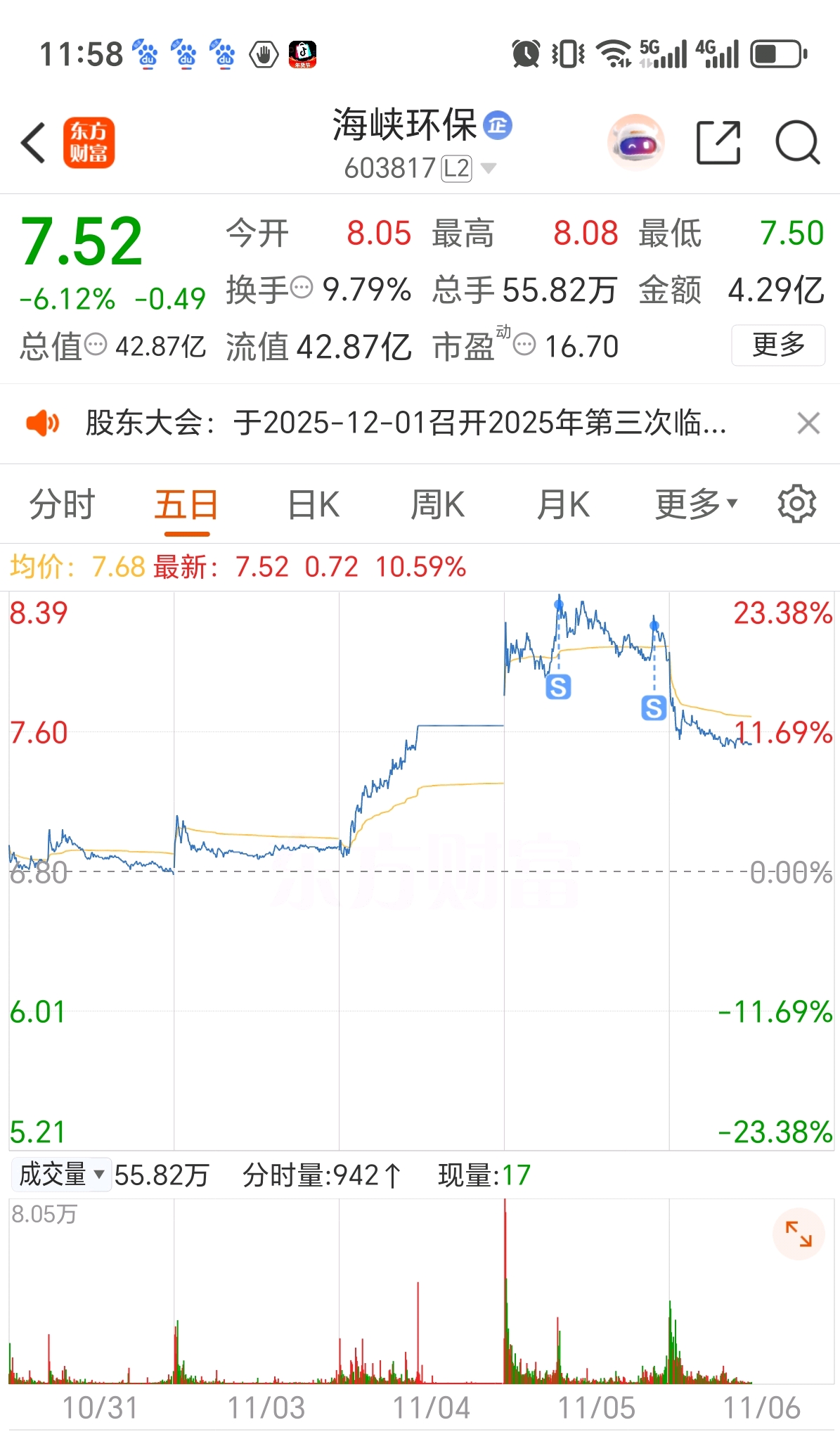 $海峡环保(SH603817)$ 兄弟们,什么价位进?