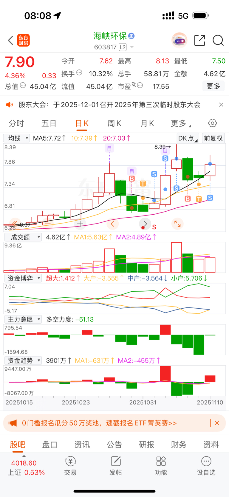 $海峡环保(SH603817)$ 看我教科书级别的操作