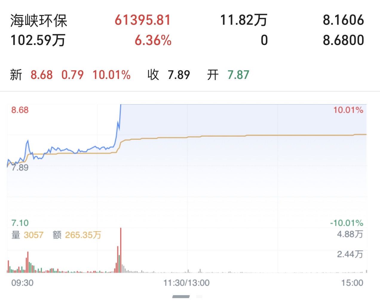 $海峡环保(SH603817)$