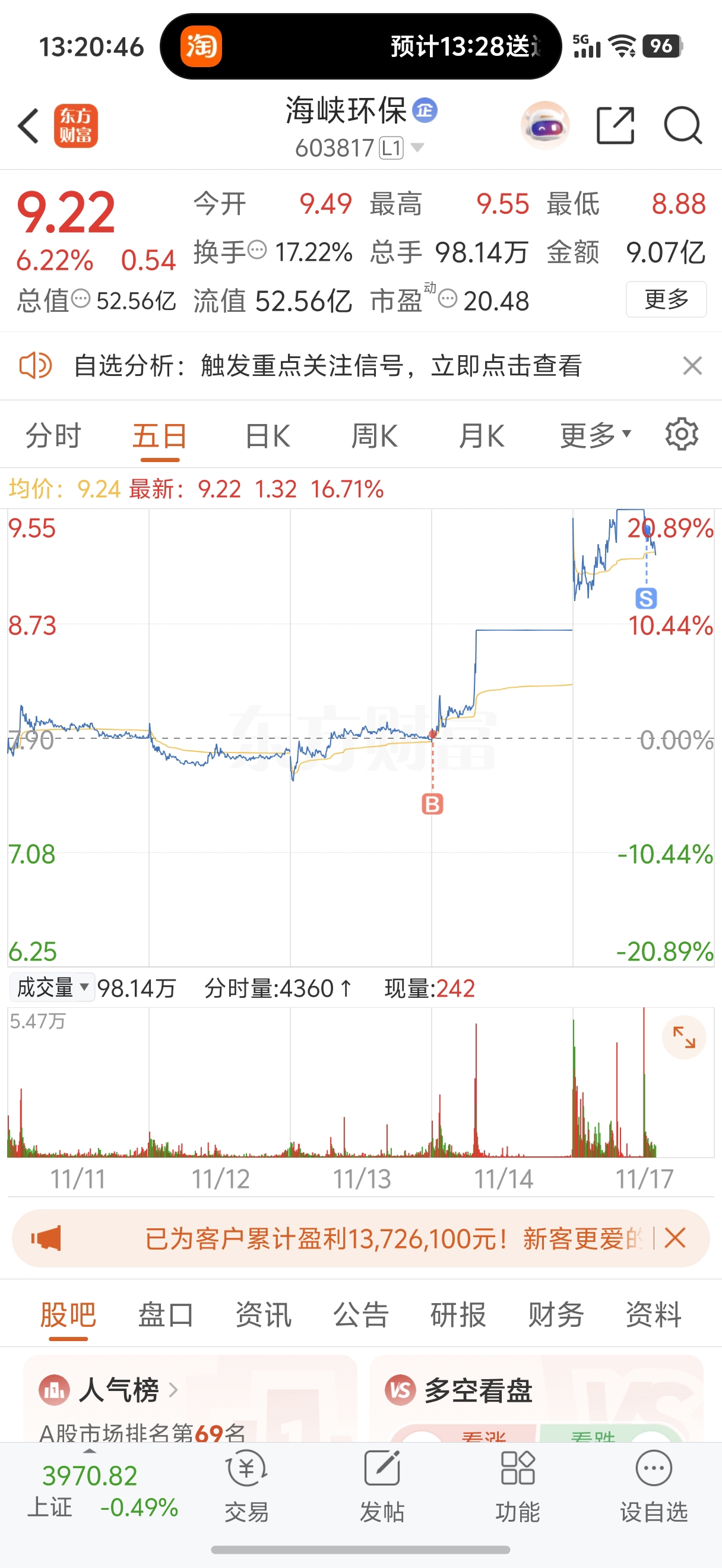 $海峡环保(SH603817)$ 就这样炸板了,太弱了