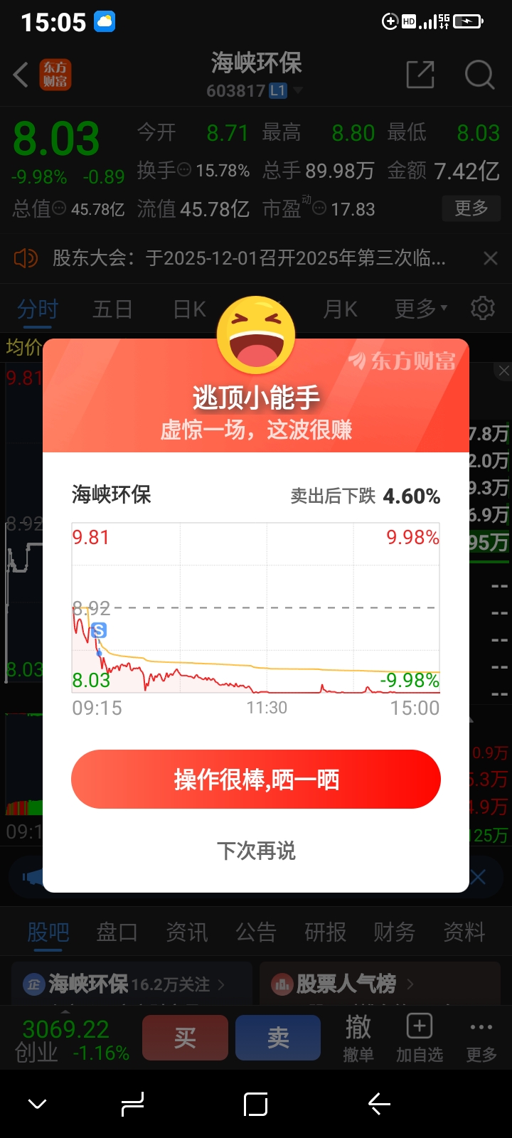 $海峡环保(SH603817)$ 我走肯定会涨的
