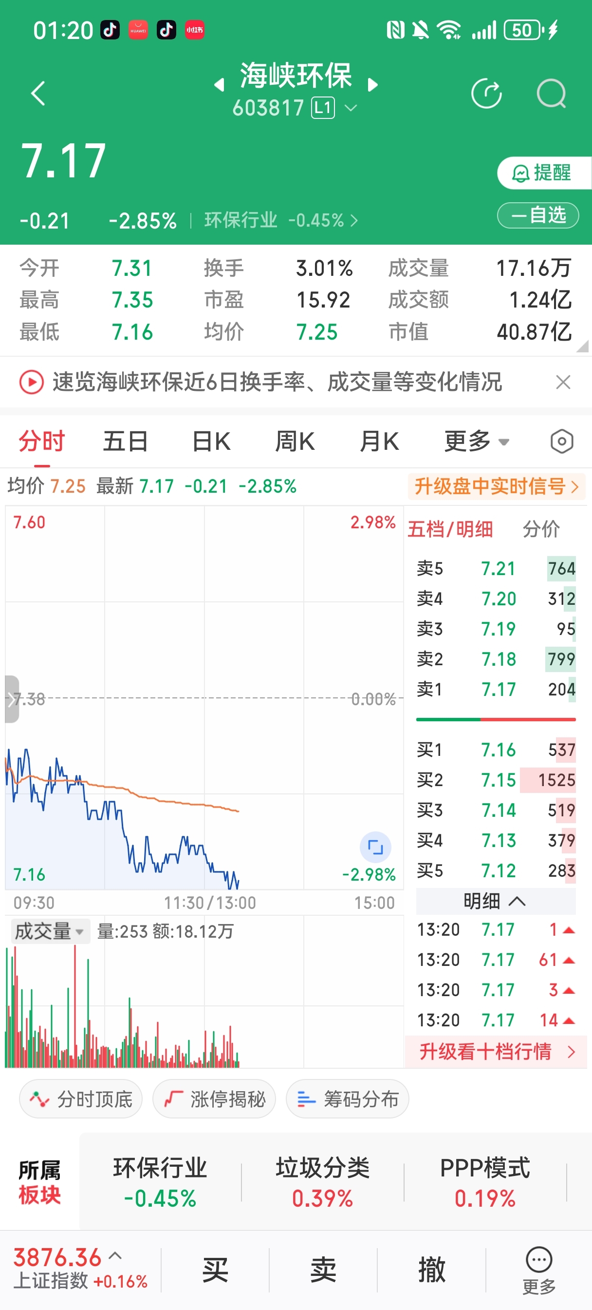 $海峡环保(SH603817)$ 盘中真看不懂,一路买盘都比卖盘大,为啥一点量能都没有,就是无止境往下打压