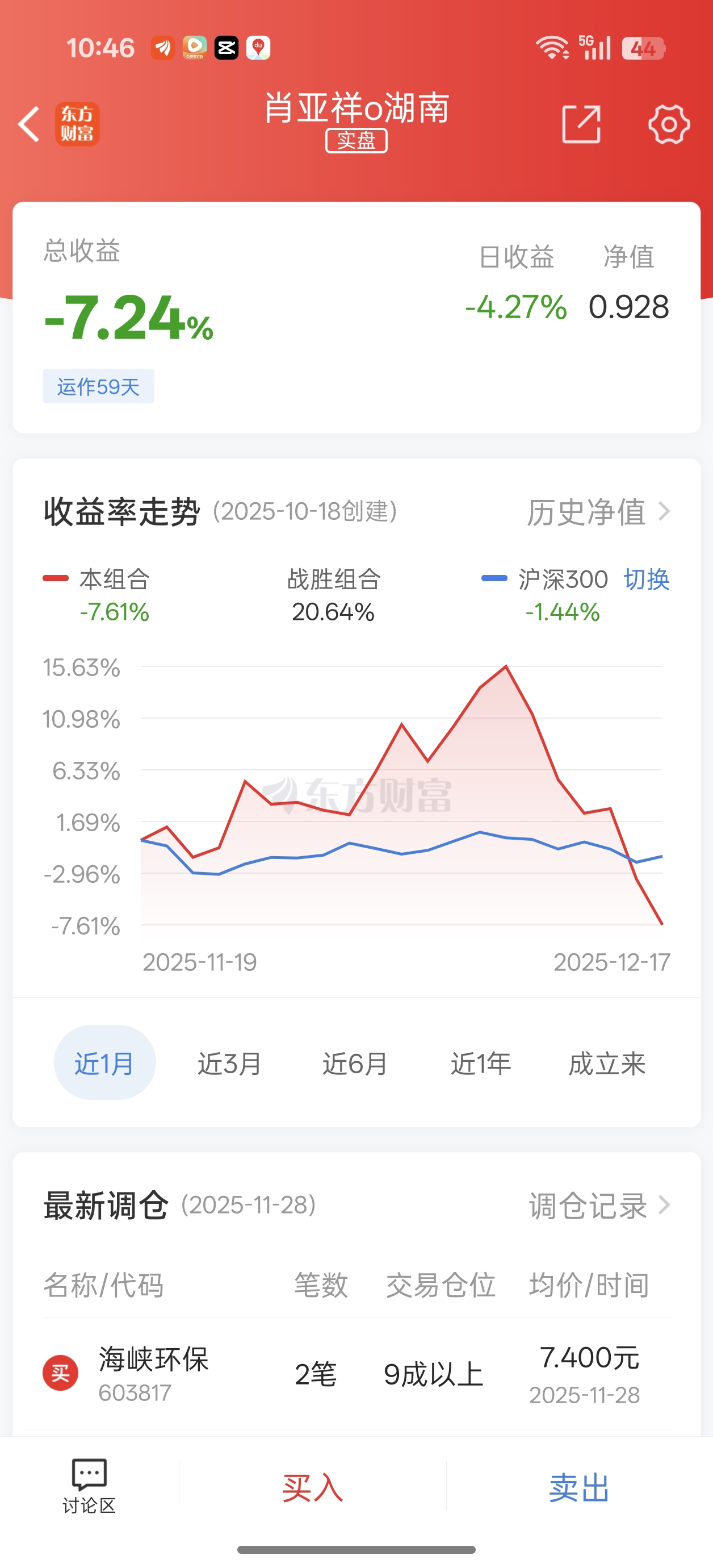 $海峡环保(SH603817)$ 本来盈利了13个点,现在亏了10个点,无语