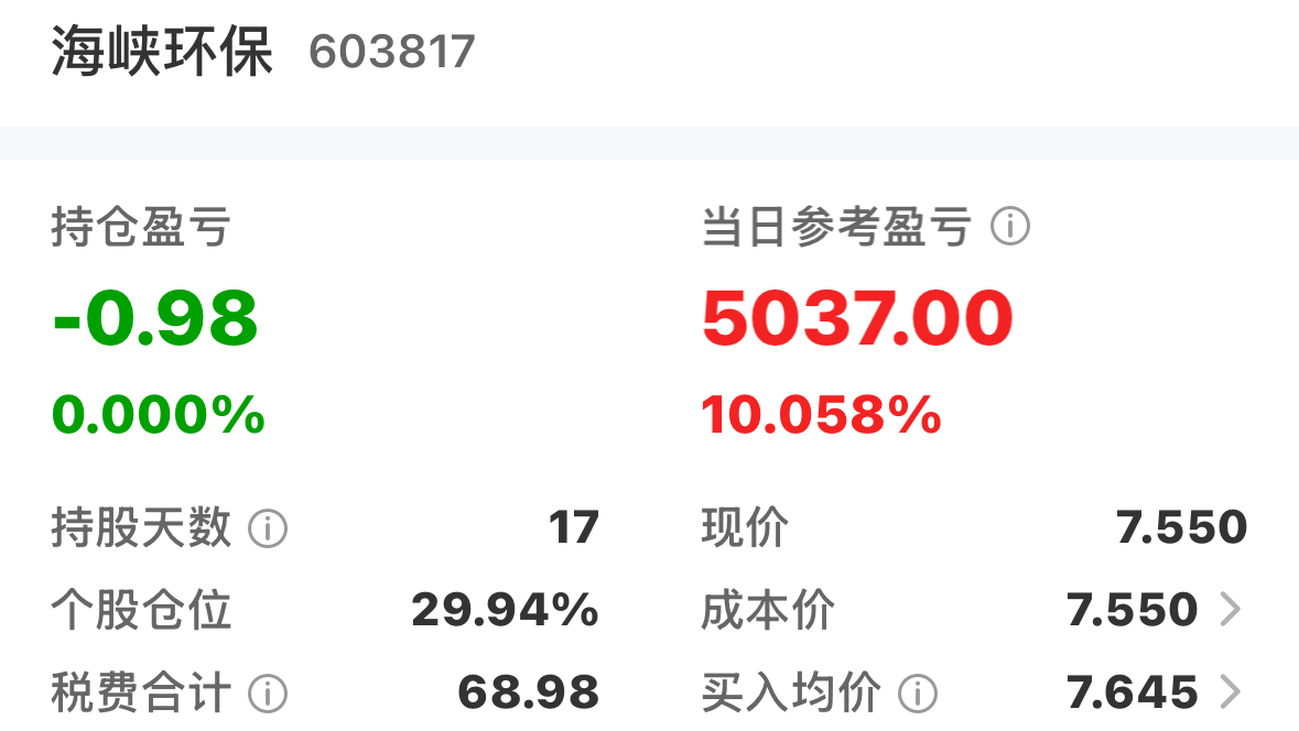 $海峡环保(SH603817)$ 刚回本,要不要走