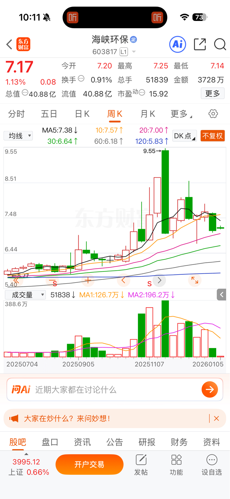 $海峡环保(SH603817)$ 周线已经掉头向下了,这个月没戏!