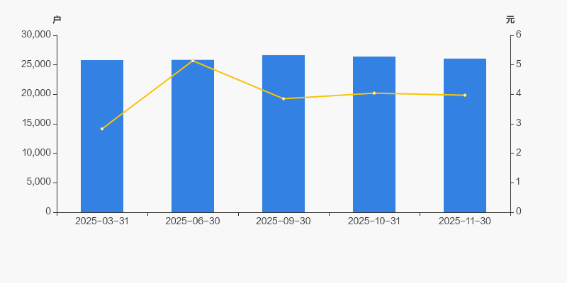 截至2025年11月30日,公司最新总股本为6.87亿股,且均为流通股。户均持有流通股数量由上期的2.6万股上升至2.63万股,户均流通市值10.46万元。