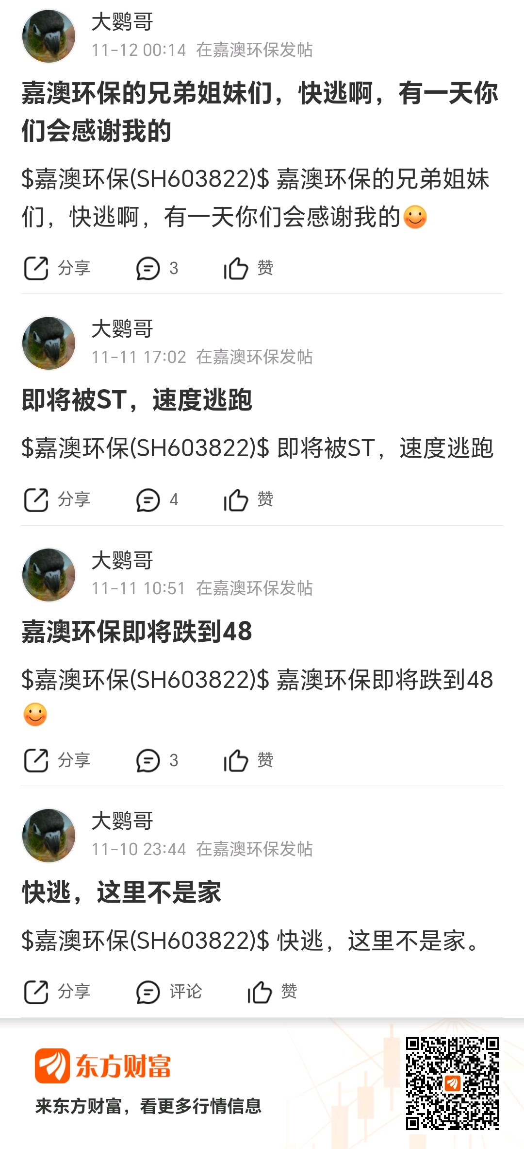 $嘉澳环保(SH603822)$ 嘉澳环保的兄弟们,鹦哥为这个市场中为数不多低位看多,高位看空的人,你们现在如果能看懂鹦哥的话,一年后你们会来感谢我的