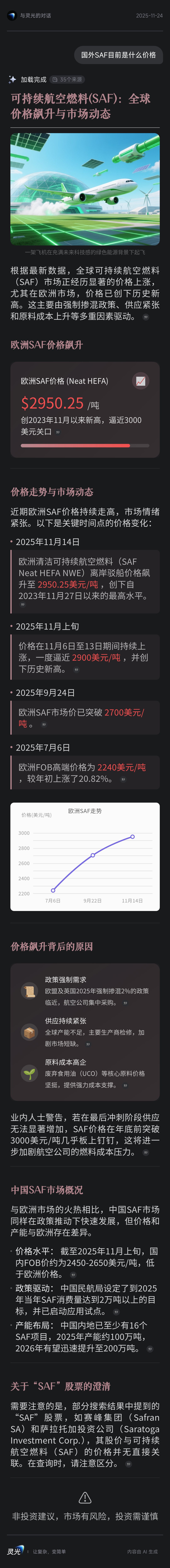 国外最新的SAF价格
