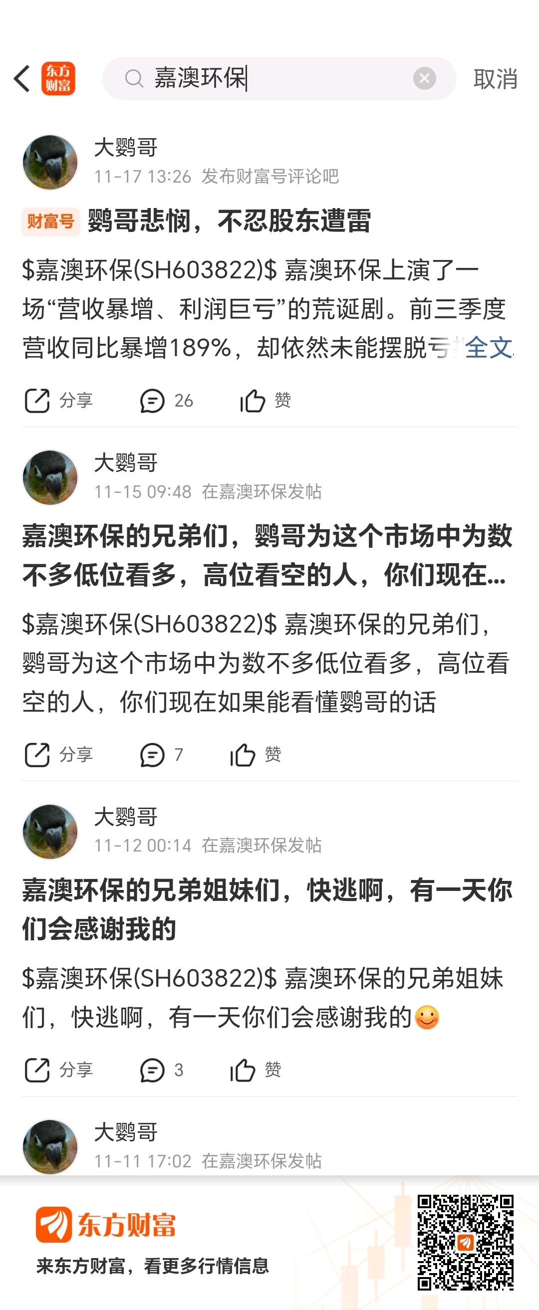 $嘉澳环保(SH603822)$ 鹦哥提醒,嘉澳环保持续给出逃跑机会,放弃幻想,远离雷股