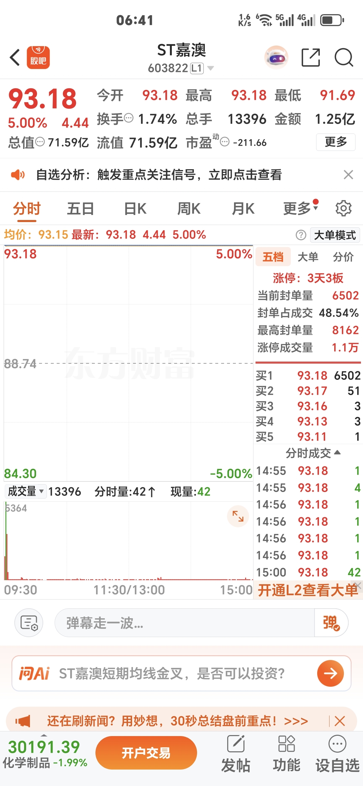 $ST嘉澳(SH603822)$ 优等生就是优秀,逆时涨停板