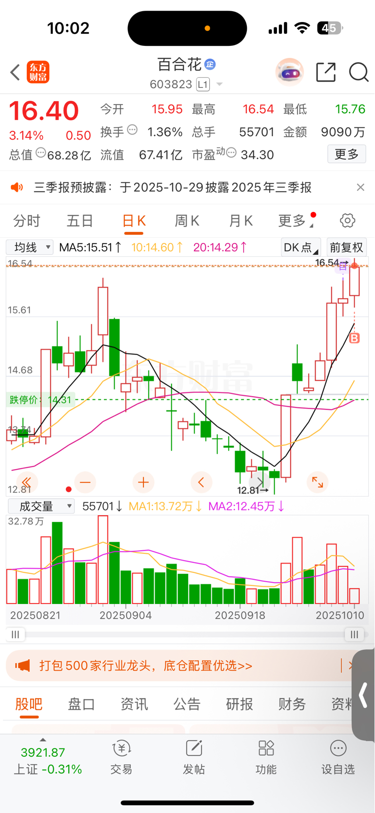 $百合花(SH603823)$ 位置高我也敢上