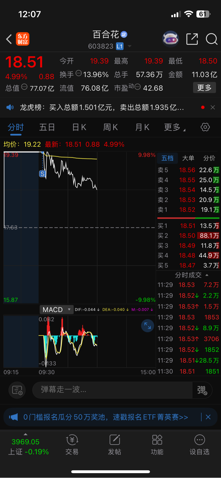 $百合花(SH603823)$ 对不起大家了,本来我想格局的,奈何主力撤单太快,我也就跟着下车了#炒股日记# #复盘记录# #实盘记录#