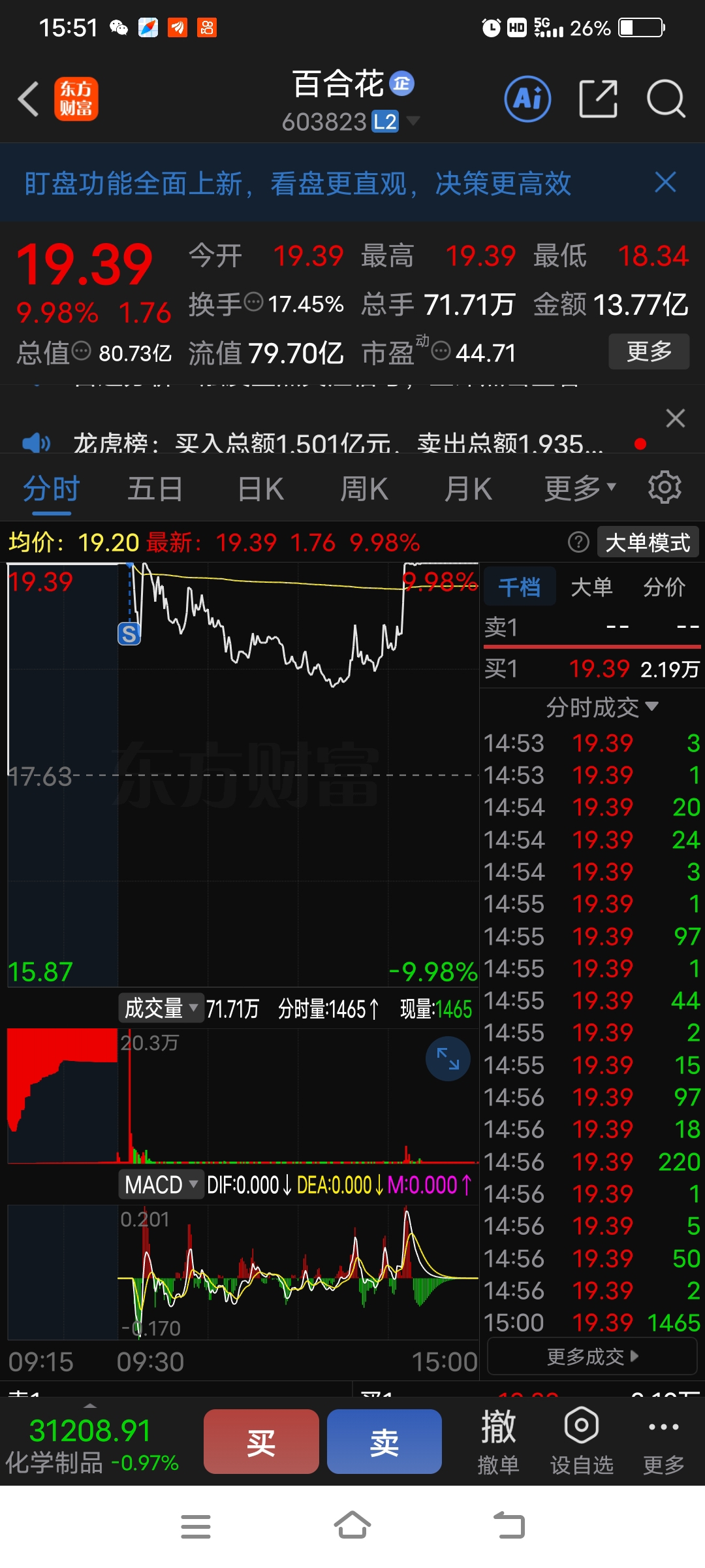 $百合花(SH603823)$ 短线选手,先行告退。祝愿留下的大哥发财。今天这走势可是不理想!