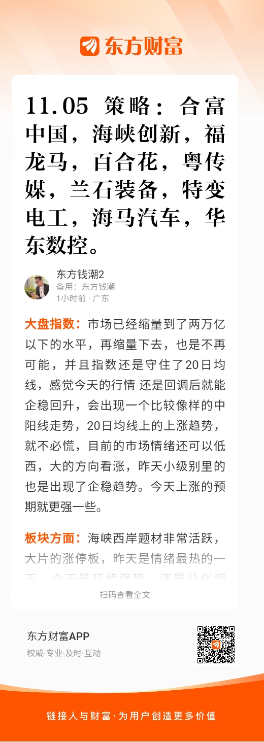 福龙马(603686):上周末是非常高的市场预期,结果高位兑现的走势,昨天是逆势大阳反包,主要是受海峡西岸题材的带动下,并不是主动jin攻的一个走势,所以今天继续连板的预期不是很大,盘中多持股拿一会儿,也是要提防卖飞,如果今天是高开的话,走势就比较好一些,如果低开的话,上攻逐步缩量还是不能追,多拿股观望还是可以。目前市场的预期是马年题材的预期,它有结合海峡西岸题材热点,所以还是有更多一些预期。$福龙马(SH603686)$