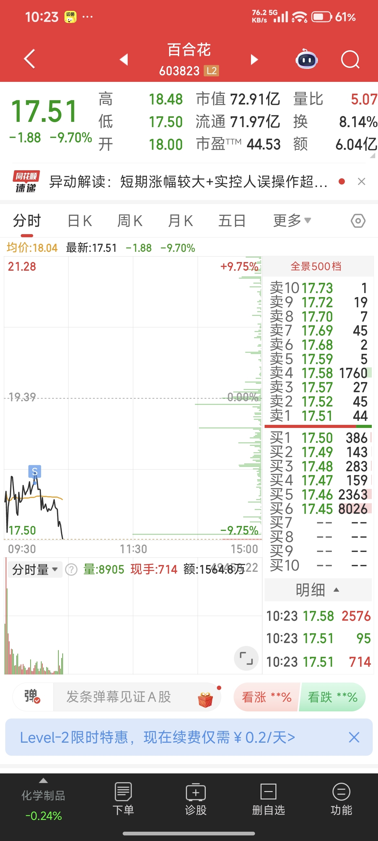 $百合花(SH603823)$ 最近倒了血霉,买啥啥崩,昨天竞价最强3板,烂板成最差的了,感觉就和猜大小一样,真难,还得慢慢学习