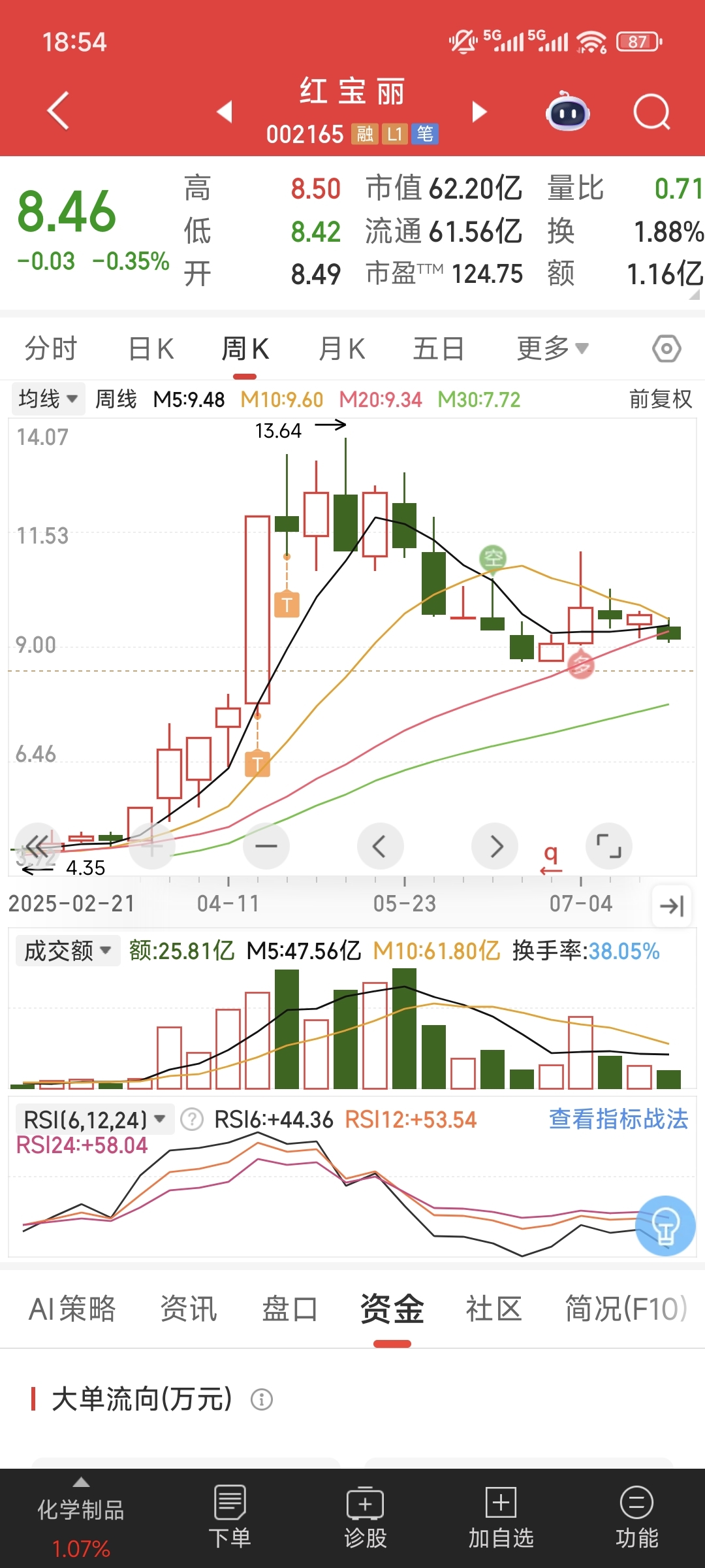 今天买入百合花,不为别的,就为致敬曾经吃大肉的化工板块同属三字龙头红宝丽