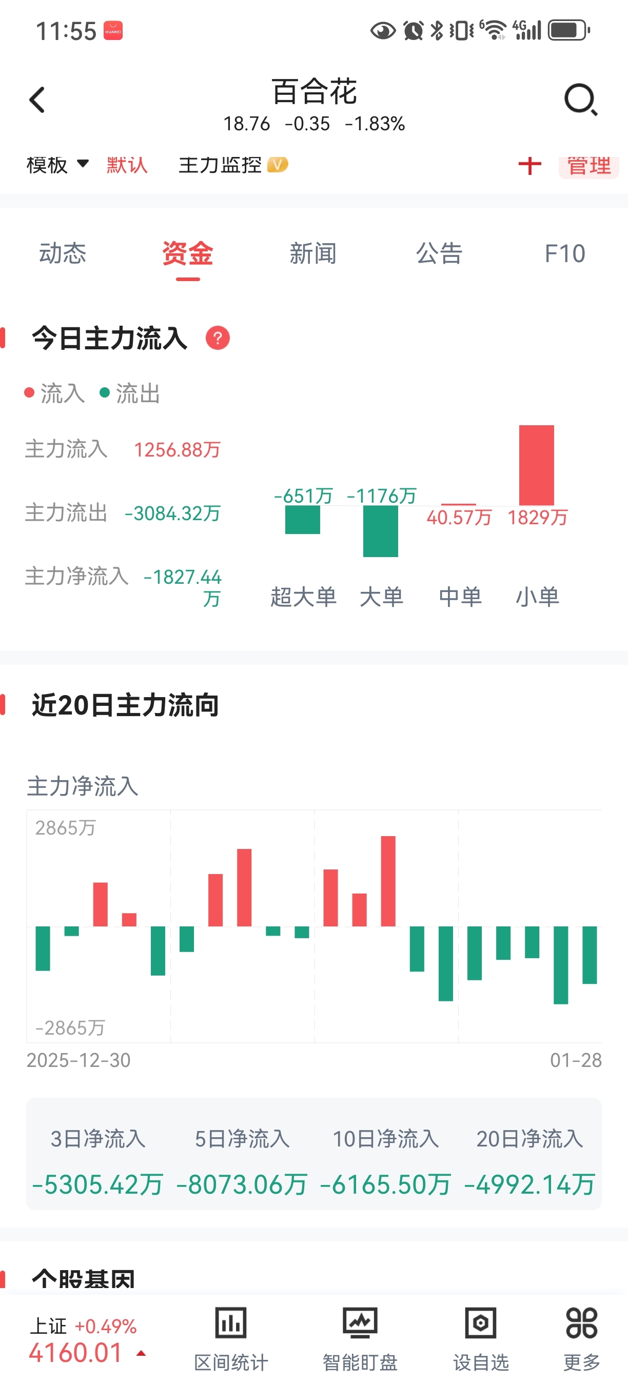 $百合花(SH603823)$ 连续7天主力资金流出,