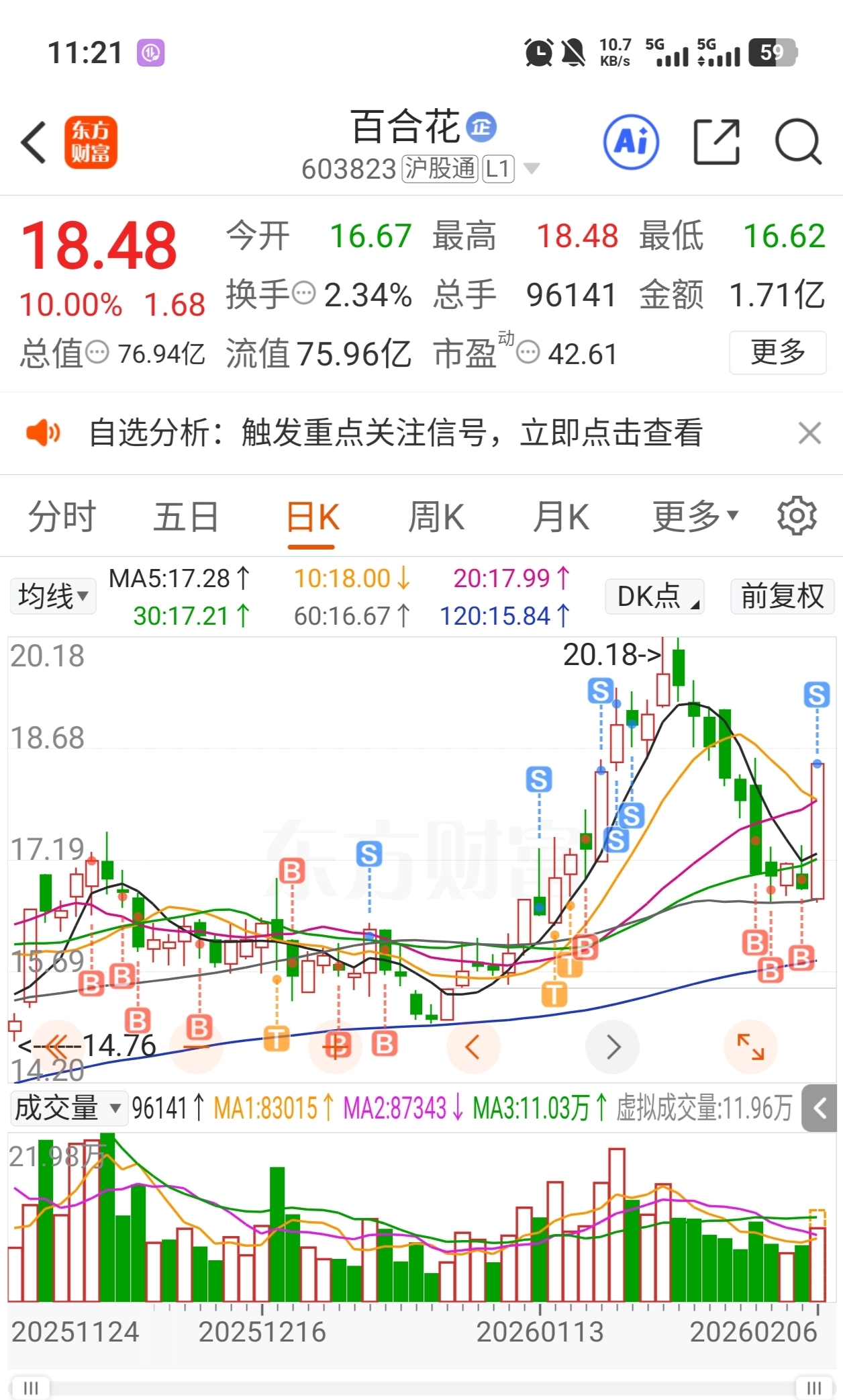 $百合花(SH603823)$