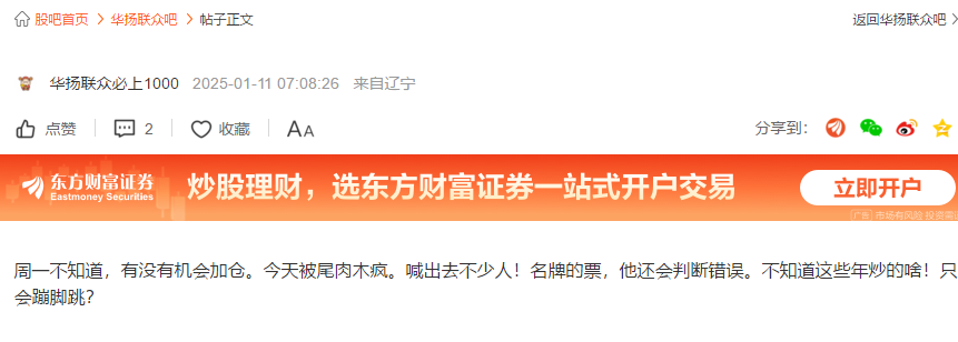 温馨提示: 1.根据《证券法》规定,禁止编造、传播虚假信息或者误导性信息,扰乱证券市场;2.用户在本社区发表的所有资料、言论等仅代表个人观点,与本网站立场无关,不对您构成任何投资建议。用户应基于自己的独立判断,自行决定证券投资并承担相应风险。《东方财富社区管理规定》