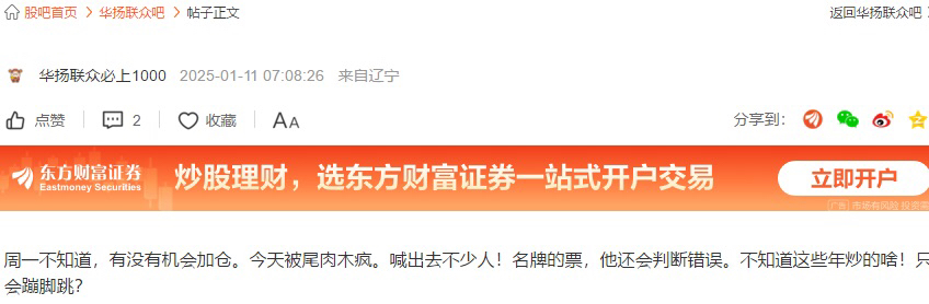 温馨提示: 1.根据《证券法》规定,禁止编造、传播虚假信息或者误导性信息,扰乱证券市场;2.用户在本社区发表的所有资料、言论等仅代表个人观点,与本网站立场无关,不对您构成任何投资建议。用户应基于自己的独立判断,自行决定证券投资并承担相应风险。《东方财富社区管理规定》