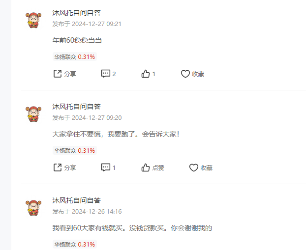 温馨提示: 1.根据《证券法》规定,禁止编造、传播虚假信息或者误导性信息,扰乱证券市场;2.用户在本社区发表的所有资料、言论等仅代表个人观点,与本网站立场无关,不对您构成任何投资建议。用户应基于自己的独立判断,自行决定证券投资并承担相应风险。《东方财富社区管理规定》