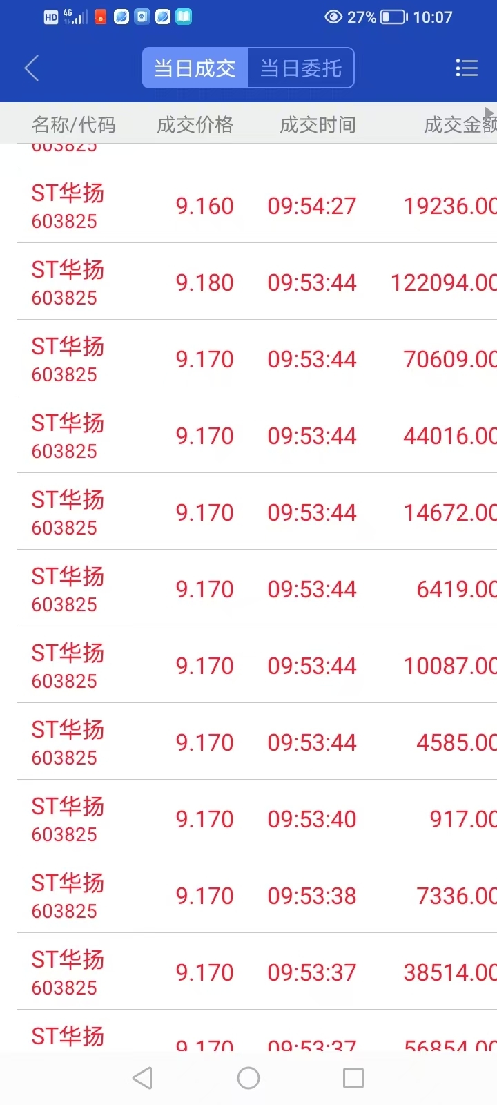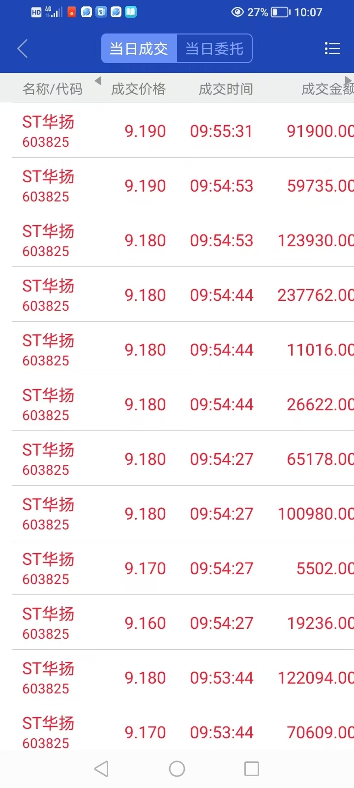 $ST华扬(SH603825)$ 今天开始:慢慢建仓华扬联众,目标持有到明年扭亏为盈,摘星去帽左右,看好湖南国资委加持下的华扬,中长线持股。个人记录不做他人买卖参考。外出有事,今天不能看盘,买了两笔示意一下开始入住,之后原则不发帖!个人买卖记录。